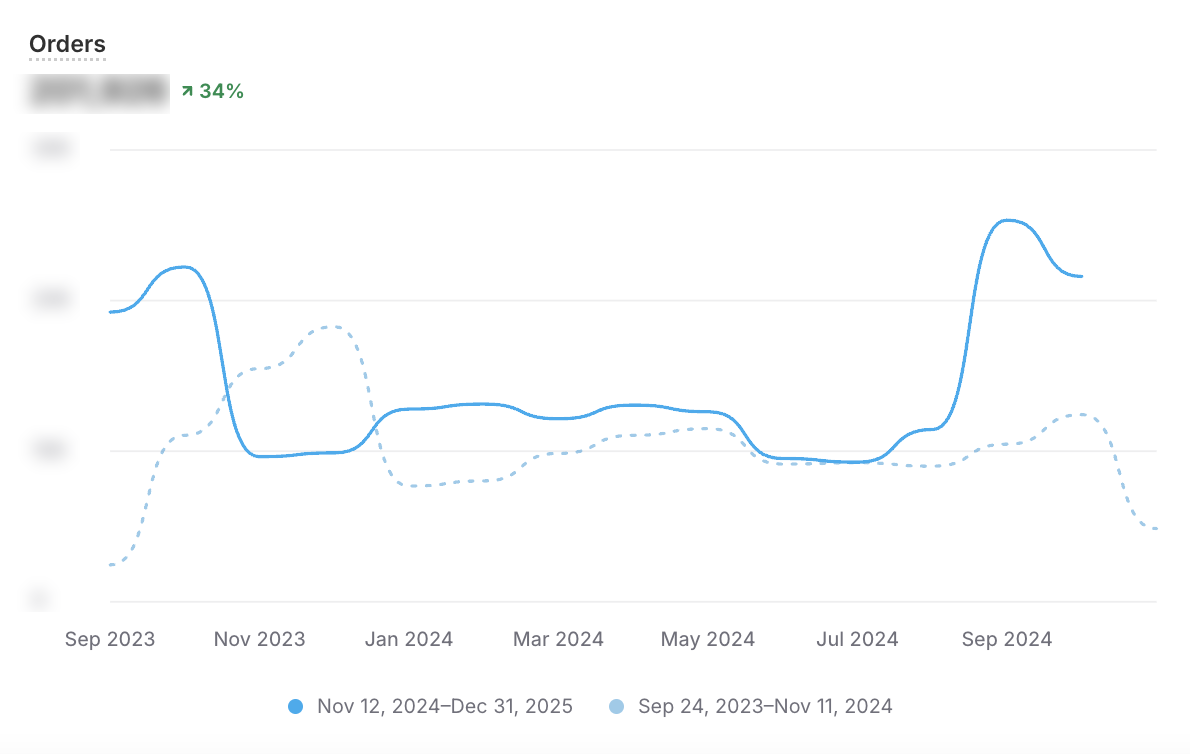 Over the last 12 months, Capo achieved a 35% increase in Total Sales and a 34% increase in Orders year-on-year. Crucially, this volume growth was supported by efficiency: Conversion Rate improved by 12%, proving that the influx of new traffic was high-quality and intent-driven.