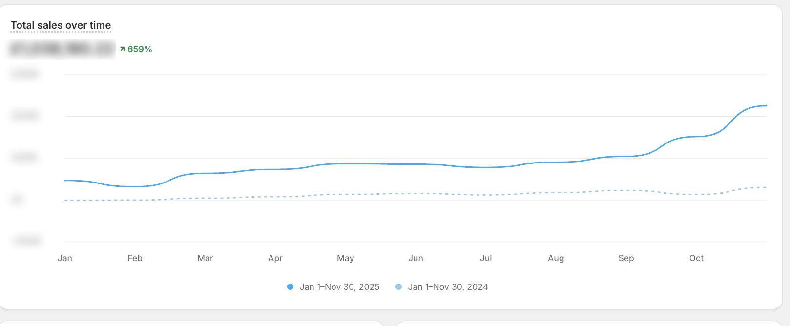 From January to November, the brand achieved a 659 percent increase in sales, 499 percent more orders, and 239 percent more sessions year on year.