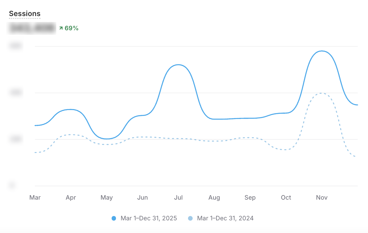 Sessions grew by 61% YoY, driven by stronger creative testing and high-performing paid traffic. This significant growth in traffic helped Reflo reach new audiences while sustaining high engagement rates.